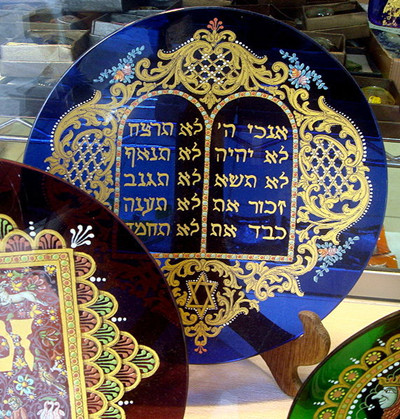 第一对石板 :《律法书,出埃及记 Tora Shmot》第 20 章。