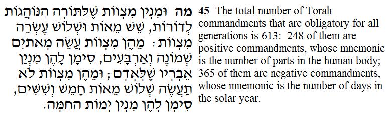 其中,248 条是 肯定命令(Mitsvot Ase),365 条是 否定命令(Mitsvot Lo Taase)。