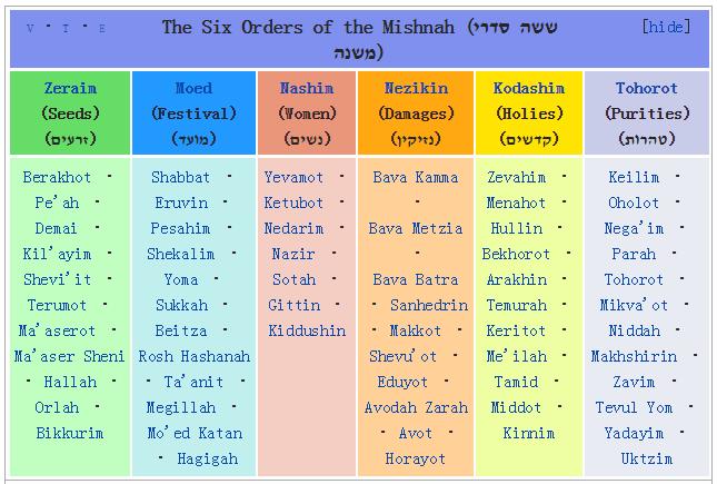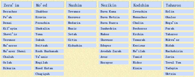 6 套(Seder)63 主题(Masechet)《Mishna 六套口传律法》总目录 :