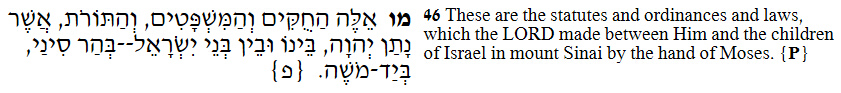 26:46 这些律例典章法度,是永恒主与以色列人在西奈山藉着摩西立的。
