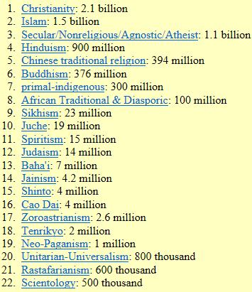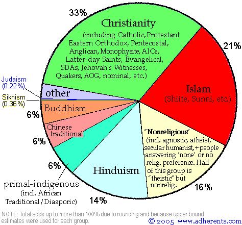 下图数据来源:http://www.adherents.com/Religions_By_Adherents.html