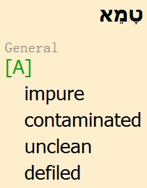 在此期间,她所触碰的一切 物体,包括 食物、餐具,包括她的丈夫,都不洁净,但不会因此导致 她所预备的食物 不合法(Lo-Kasher)。唯一的问题是,她所预备的食物,不能奉献给 祭司(Kohen)吃,因为这样做会导致 耶路撒冷 圣殿(Bet haMikdash)也不洁净。但是 因为 圣殿 还没有重建,所以这个问题 暂时不存在。
