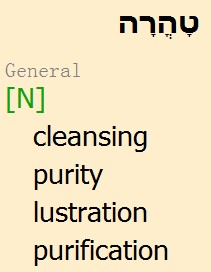 犹太法律(Halacha)规定,女子 月经期间 与 月经后 7 天 不洁净(TaMe)。