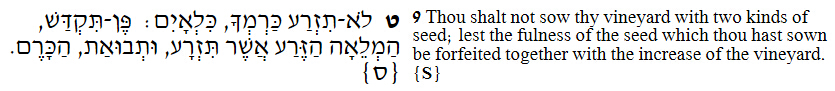 22:9 不可两样种子种在你的葡萄园里,免得你撒种所结的和葡萄园的果子都要充公