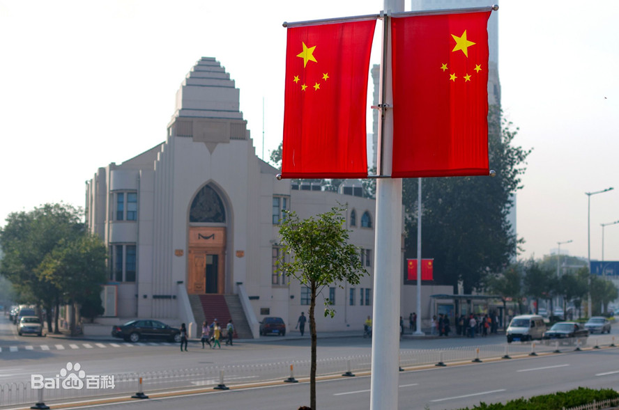 上图:建于 1940 年,坐落在 天津 市中心的 德国派(Ashkenaz)犹太教堂,路人皆知。