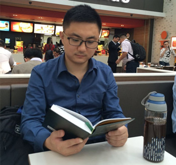上图:ElAzar 来自 湖北 武汉,2014 年加入 以色列学会。他每天利用空余时间,学习 正统犹太教 书籍。