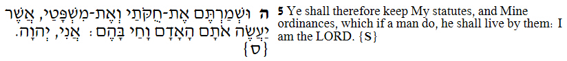 18:5 所以你们要守我的律例、典章。人若遵行,就必因此活着。