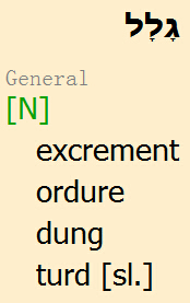 Gilulim(屎神)来自 希伯来语 Galal(屎、粪便)。