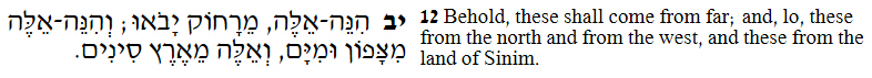 49:12 看哪,这些从远方来,这些从北方、从西方来,这些从中国来。
