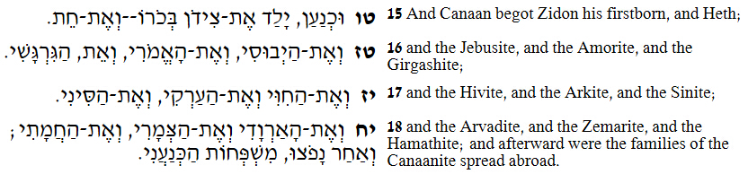 10:15 迦南生长子西顿,又生赫,10:16 和耶布斯人、亚摩利人、革迦撒人、
