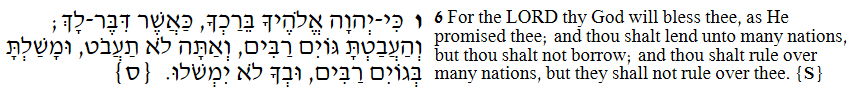 你必借给许多国民,却不至向他们借贷;你必管辖许多国民,他们却不能管辖你