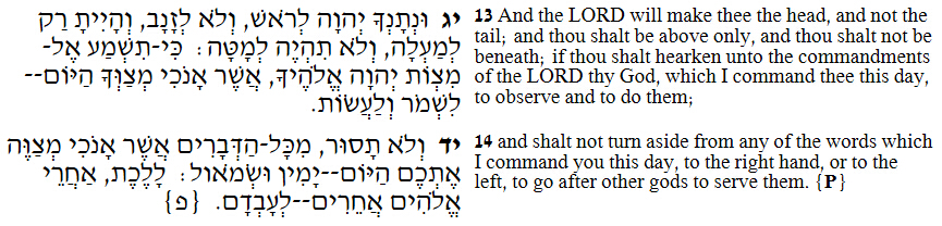 28:13-14 你若听从永恒主你上帝的诫命,就是我今日所吩咐你的,