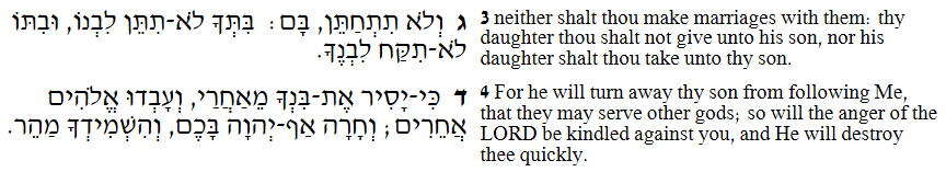 在下面的经文中,上帝说:不可将你的女儿嫁他们的儿子,但是,没有后果。